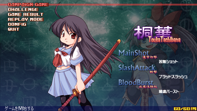 ※動作確認版では選択できるキャラクタは桐華のみです。